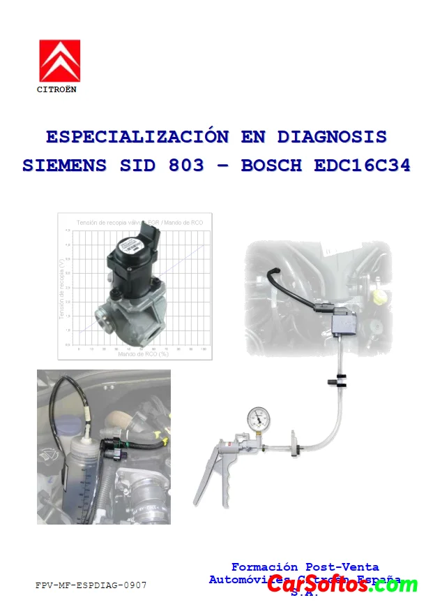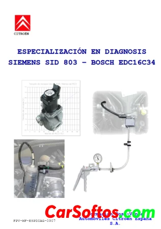 Este documento presenta las características de los principales componentes de los circuitos de combustible y aire de los motores DV6TED4, DW10BTED4 y DW10UTED4 de Citroën. Incluye esquemas de los circuitos, valores de referencia, y descripciones de los controles de los componentes realizados por los calculadores Siemens SID 803/803A y Bosch EDC16 C34. También resume los principios y componentes del filtro de partículas.