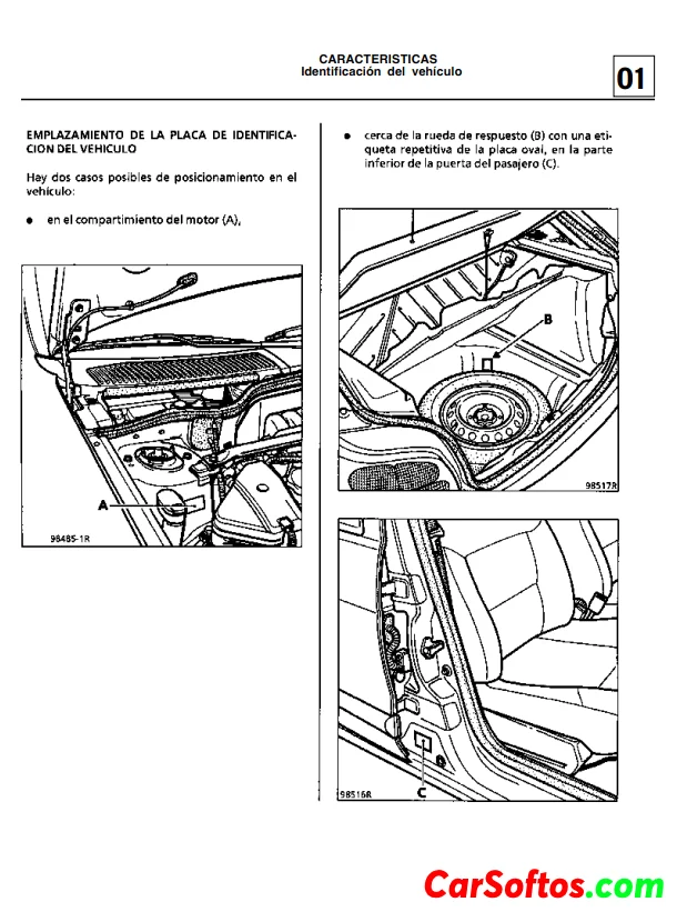 Manual de Taller Renault Megane 3 proporciona información sobre las características de un vehículo, incluyendo su motor, embrague y caja de velocidades. Además, ofrece detalles sobre la identificación del vehículo.