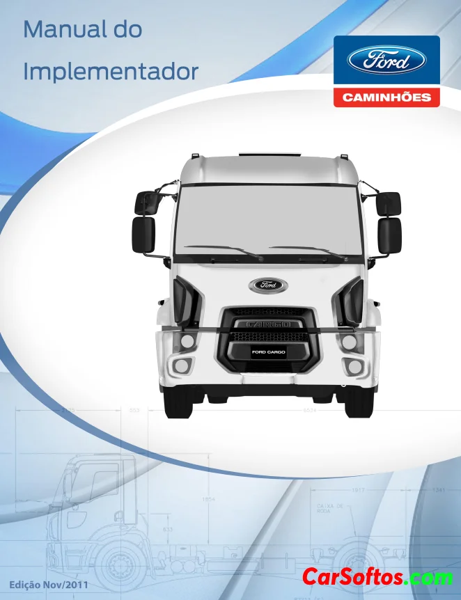 Este documento fornece especificações técnicas detalhadas para vários modelos de caminhões da marca Ford Cargo 815, incluindo dimensões, capacidades de carga, motores e outras características. Também inclui informações sobre legislação aplicável, identificação de veículos, instalação de equipamentos, alterações no chassi e diretrizes para carga e transporte seguros.