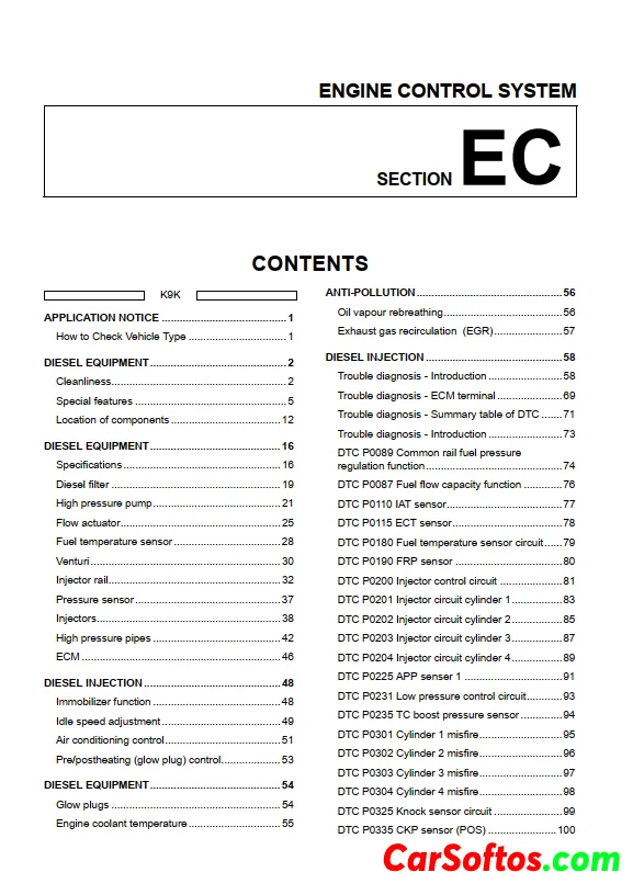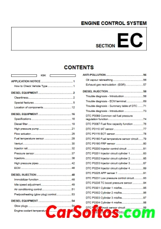 Renault K9K Engine Control Manual - 1. Cleanliness is essential when working on the high pressure direct injection system to prevent contamination that can damage components. 2. Sources of contamination include metal chips, plastic, paint, fibers, hair and moisture. 3. Special plugs, bags and lint-free materials must be used to prevent contamination of parts when removed from the vehicle. Thorough cleaning of connections is also required before opening the fuel circuit.