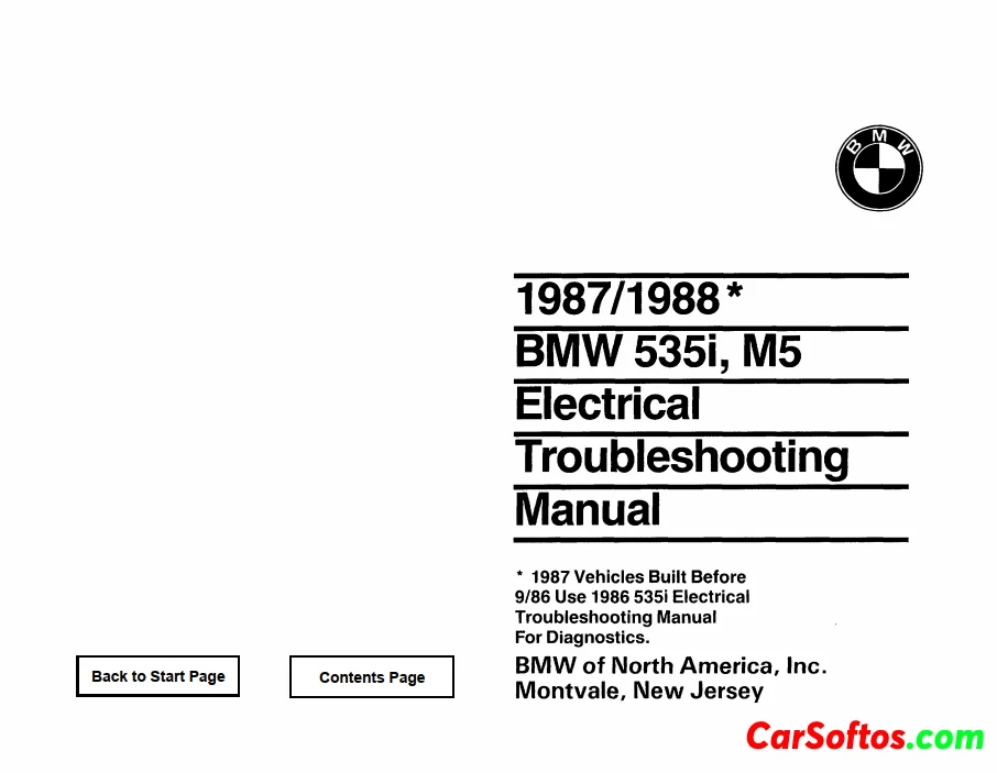 This comprehensive Electrical Troubleshooting Manual provides detailed guidance for diagnosing and repairing electrical faults in 1987 – 1988 BMW 535i M5 models.