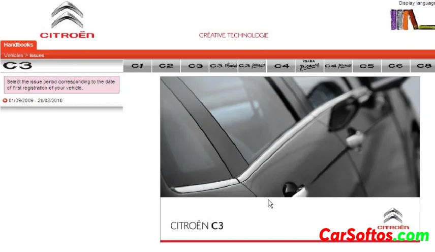 Citroen C3 Owners Handbook - Rev counter. Indicates the speed of rotation of the engine (x 1 000 rpm). 2. Vehicle speed. Indicate the current speed of the moving vehicle (mph or km / h). 3. Fuel level. Indicate qty of fuel remaining in the tank. 4. Screen. 5. Display management button Servicing information. Adjust the time and choose units. Reset the service indicator. 6. Instrument panel lighting button. Adjusts the brightness of the lighting of the instruments and controls.