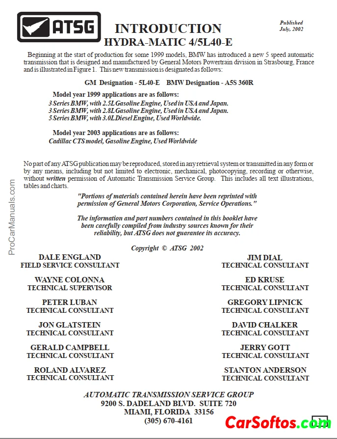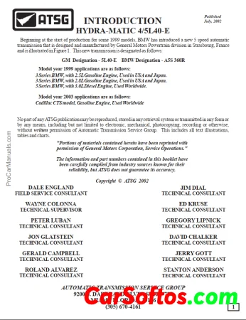 Beginning at the start of production for some 1999 models, BMW has introduced a new 5 speed automatic transmission that is designed and manufactured by General Motors Powertrain division in Strasbourg, France. This new transmission is designated as follows: