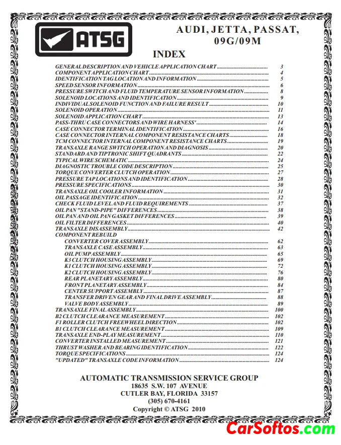 This manual contains the procedures necessary to diagnose, rebuild and/or repair the 09G/09M transaxle and is intended for automotive technicians that are familiar with the operation of automatic transmissions.