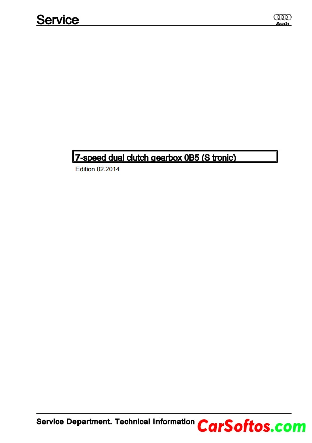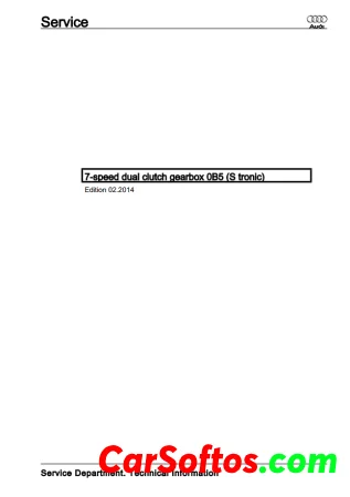 Technical information and repair instructions for a 7-speed dual clutch gearbox. It includes sections on safety precautions, identification, technical data, repairs to the clutch, controls, gears, shafts, final drive, and more. Mechanics are advised to carefully follow the instructions to ensure vehicle safety and roadworthiness.