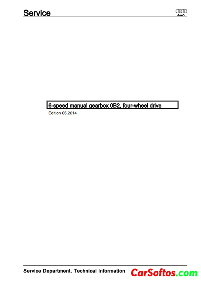 Workshop manual for repairing Audi vehicles with a 6-speed manual transmission and four-wheel drive. It contains sections covering technical specifications, repair instructions, and how to service different components of the transmission system including the clutch, gearbox, gears, shafts, and differentials. The manual stresses the importance of carefully following technical instructions and safety precautions when working on vehicles.