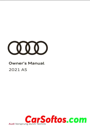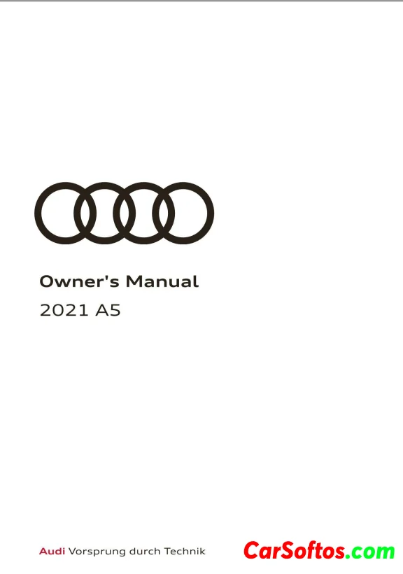 Audi A5 2021 Owner's manual explains how to operate and maintain the vehicle, provides tips for safety, efficiency, and maintenance, and includes information about features, driving assistance systems, and emergency functions. It covers starting and operating the vehicle, storage and seating, climate controls, driving modes, trailer towing, and connecting to infotainment and assistance services through Audi connect. Owners are advised to read the manual thoroughly to familiarize themselves with the vehicle.