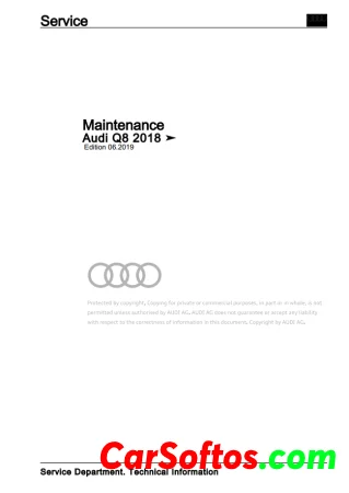 Workshop manual that details the electrical systems of the Audi Q8 from 2018 to 2020. It includes sections on safety precautions, repair notes, and detailed instructions for various electrical components and systems, such as batteries, lighting, switches, wiring, and instrumentation. The document emphasizes the importance of cleanliness, proper handling of electronic components, and using genuine replacement parts. Additionally, it covers procedures for specific parts like LED headlights and battery systems, providing technical data and diagrams for accurate repairs.