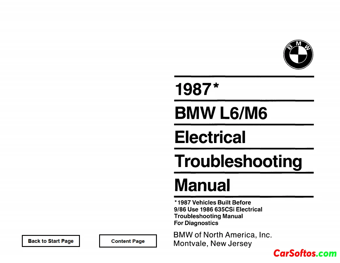 This comprehensive Electrical Troubleshooting Manual provides detailed guidance for diagnosing and repairing electrical faults in the 1987 BMW L6 M6 model.