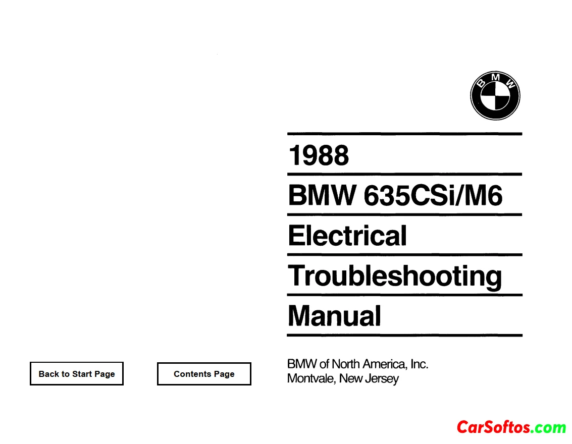This comprehensive Electrical Troubleshooting Manual provides detailed guidance for diagnosing and repairing electrical faults in the 1988 - 1989 BMW 635CSi M6 model.