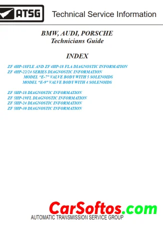 This Manual covers the following models:ZF-4HP-18FLE/FLA Transaxle, found in Audi and Porsche.
