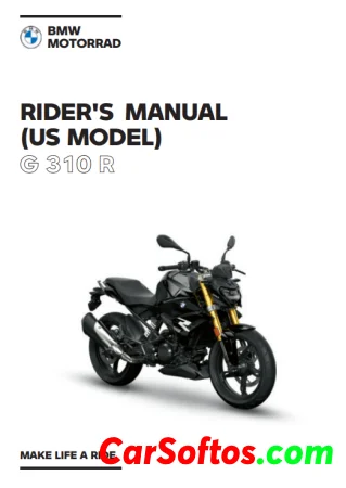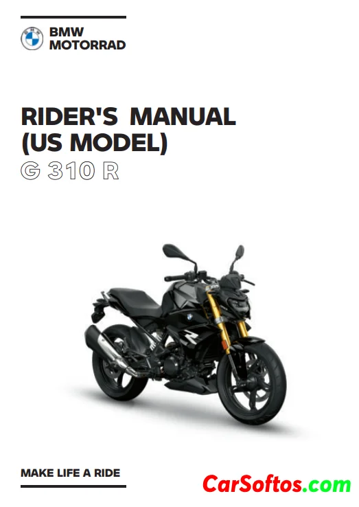 BMW Motorrad Rider's Manual for the G 310 R provides essential information for new owners, including operating instructions, maintenance guidelines, and safety precautions. It emphasizes the importance of familiarizing oneself with the vehicle to ensure safe and confident riding. The manual also contains technical data, service information, and resources for additional support from authorized retailers.