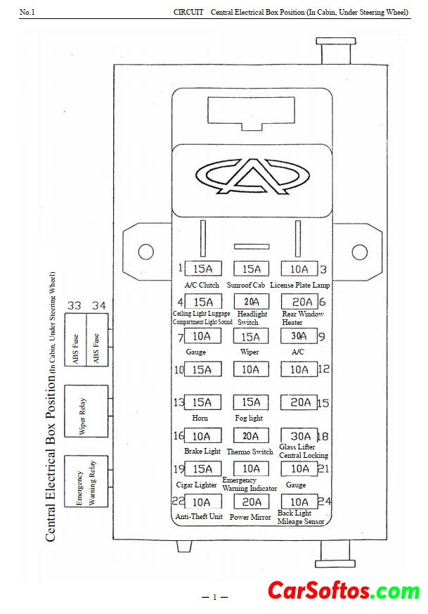 CONTENTS:Central Electrical Box Fuse And Relay Position