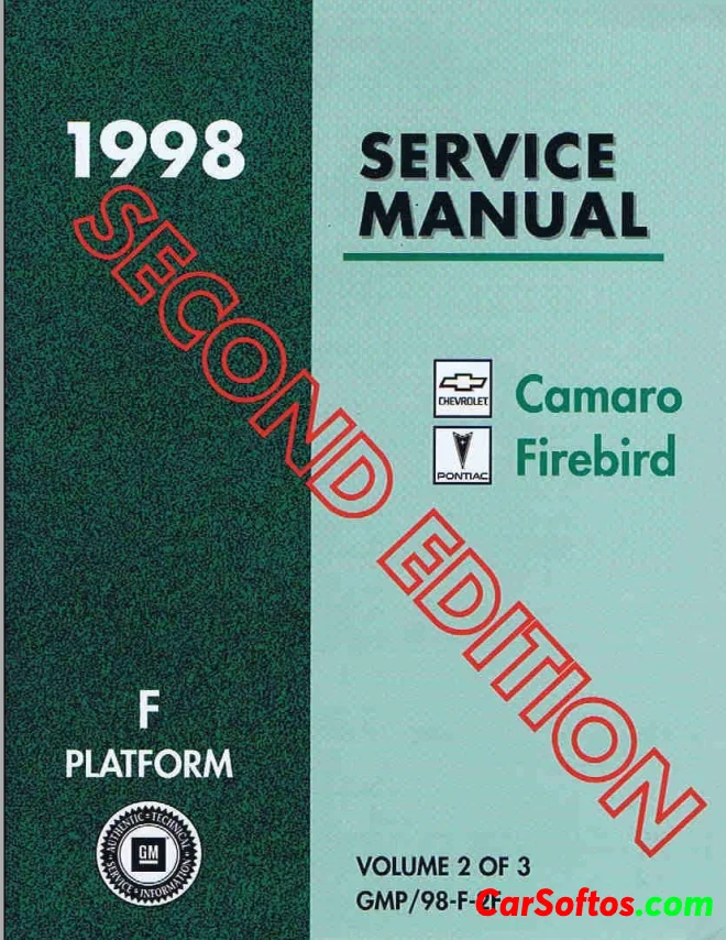 1998 "F Platform" Service Manual, Camaro & Firebird. Written for Chevy & Pontiac dealership mechanics, this set of factory-published original manuals shows you how to work on your vehicle. With step-by-step instructions, clear pictures, exploded view illustrations, schematics, wiring diagrams and specifications, you will have the information you need to get your project on the road and keep it there. This manual covers all 1998 Chevrolet Camaro cars, including coupe, convertible, & Z28, as well as all Pontiac Firebird models, including coupe, convertible, Formula, and Trans Am.