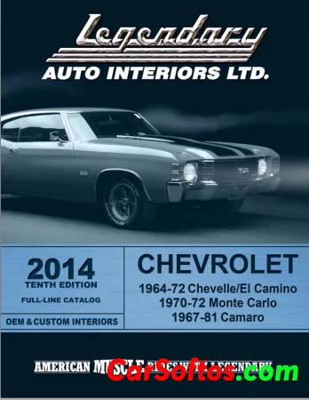 Chevrolet Chevelle and El Camino leather interior components from 1964-1968. It lists front and rear bucket seats, bench seat components, and headrest covers for each year with available colors and part numbers. Some items are identified as new old stock or specialty run materials. Pricing ranges from $60 to $824 per pair depending on the item and year. Installation is recommended for some products.