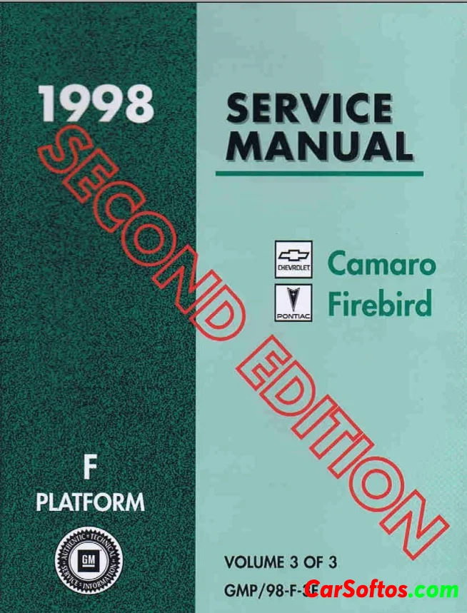 1998 "F Platform" Service Manual, Camaro & Firebird. Written for Chevy & Pontiac dealership mechanics, this set of factory-published original manuals shows you how to work on your vehicle. With step-by-step instructions, clear pictures, exploded view illustrations, schematics, wiring diagrams and specifications, you will have the information you need to get your project on the road and keep it there. This manual covers all 1998 Chevrolet Camaro cars, including coupe, convertible, & Z28, as well as all Pontiac Firebird models, including coupe, convertible, Formula, and Trans Am.