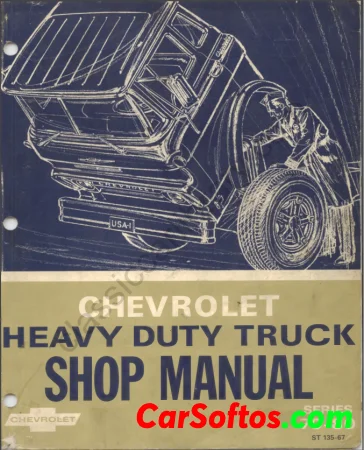Chevrolet Heavy Duty Truck 1967 Shop Manual. The index lists 14 sections covering topics such as lubrication, frames, suspensions, brakes, engines, transmissions, steering, wheels/tires, and electrical systems. Each section contains procedures for maintenance, repairs, and component removal/installation. Model-specific data is also provided for various Chevrolet truck series outlining standard and optional engines, clutches, axles and transmissions.