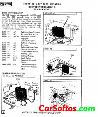Chrysler 41TE and 42LE Diagnostic Code Book is designed to provide the technician with a step by step diagnostic approach to each and every transaxle code available from 1989 to 1998 model year. This manual can be used in companion with any type of scanner utilized in retrieving these codes from the controller. As an aid to the technician, component location is recognized throughout the manual.