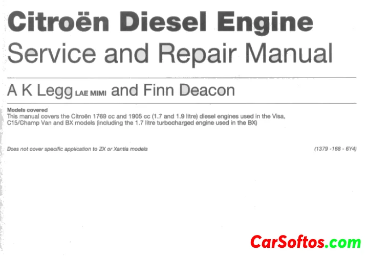 Citroen 1.7 litre and 1.9 litre Diesel Engine Repair Manual PDF. Diesel engines (inc. turbo-Diesel) used in the following applications 1984 – 1996 A to N 1.7 litre (1796cc) and 1.9 litre (1905cc).