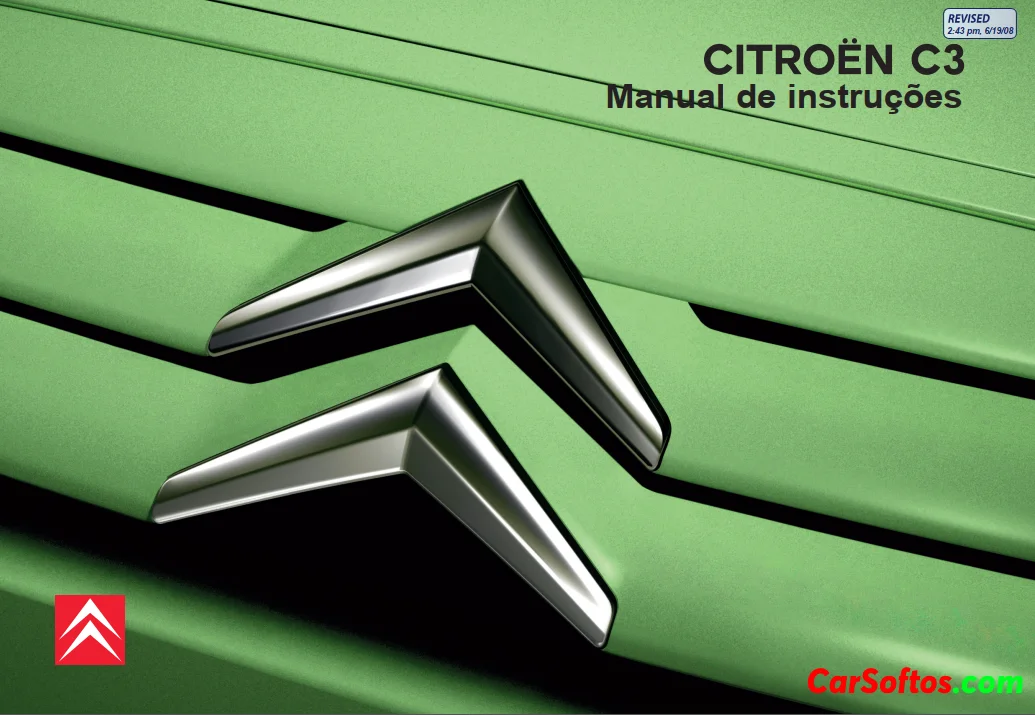 Este documento fornece instruções sobre como operar e manter um veículo Citroën. Ele descreve os componentes do veículo como controle remoto, chaves, portas, bancos, painel de instrumentos e sinalização. Também fornece informações sobre abastecimento, visibilidade, espelhos retrovisores e vidros elétricos.