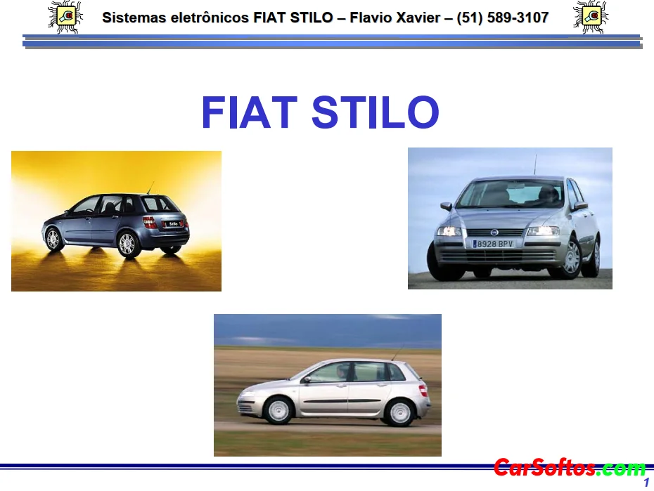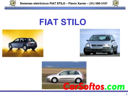 Documento descreve a arquitetura eletrônica do sistema FIAT STILO, composta por dois barramentos CAN, um de alta velocidade para sistemas críticos e um de baixa velocidade para sistemas de conveniência. O sistema também inclui uma rede serial A-bus e várias centrais eletrônicas conectadas.