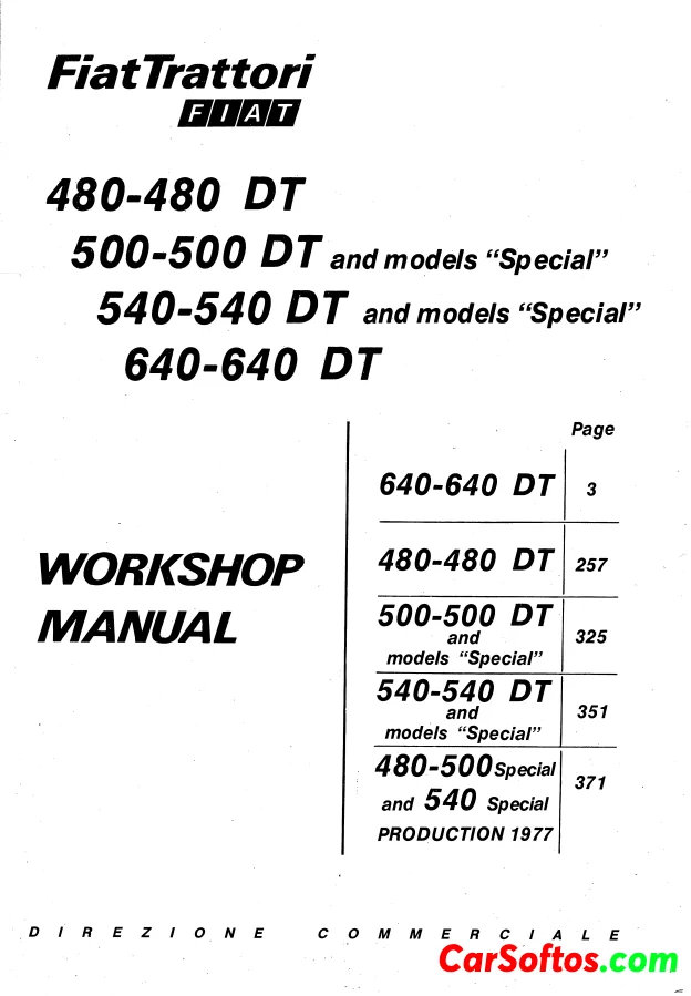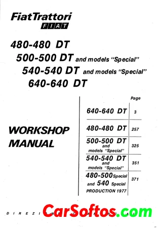 Fiat Trattori FIAT 480-480 DT, 500-500 DT and models "Special" 540-540 DT and models "Special" 640-640 DT WORKSHOP MANUAL.