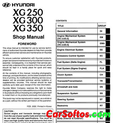 Description: The manual contains information about the repair, operation and device of Hyundai XG cars.