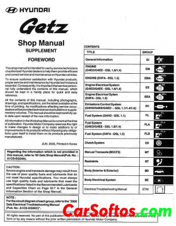 Description: 2003 and 2005 Hyundai Getz Official Repair Manual + Wiring Diagrams.