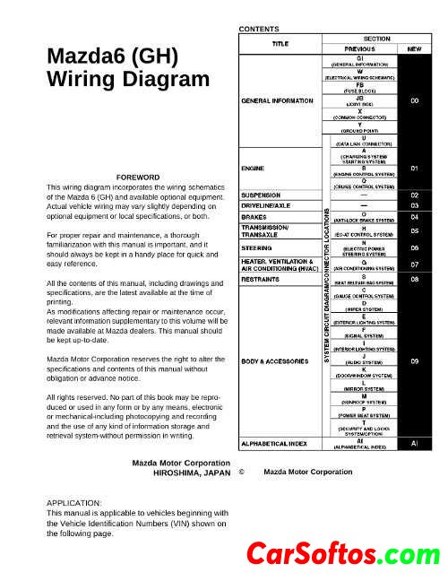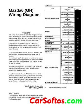 Wiring diagrams of the Mazda 6 car in the back of the GH.