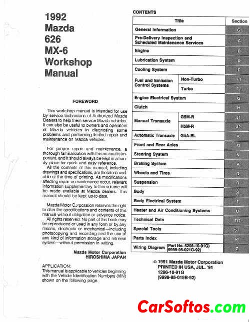 » Workshop Manual Mazda 626 1992
