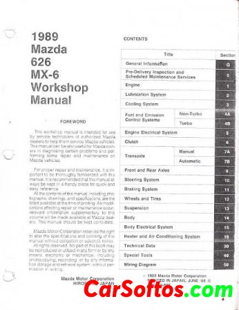 1989 Mazda 626 and Mazda MX-6 Maintenance and Repair Manual.