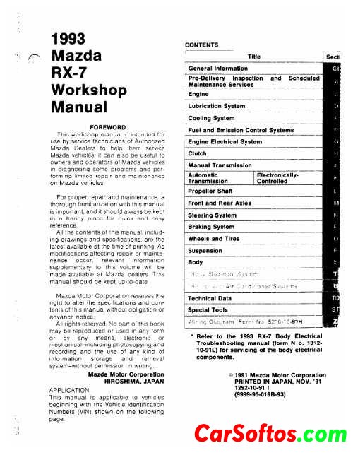 Schemes of electrical equipment of the car Mazda RX-7 1993-1994 of release.