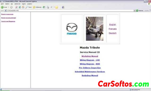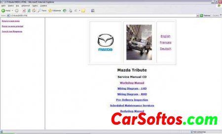Multimedia manual in English, German and French for the maintenance and repair of the first generation Mazda Tribute.