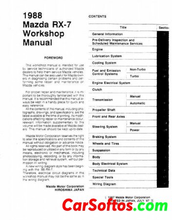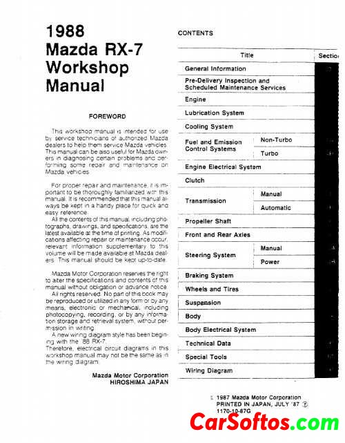 Maintenance and repair manual for a 1988 Mazda RX-7.