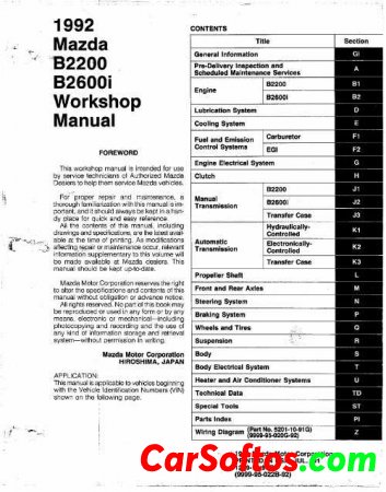 1992 Mazda B2200 and Mazda B2600i Maintenance and Repair Manual.