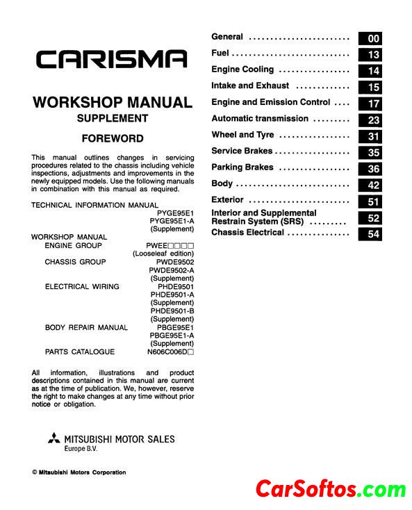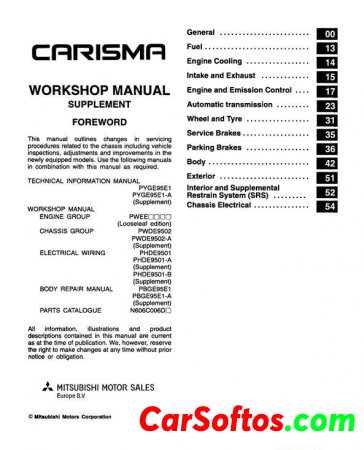 Description: Repair + wiring diagrams for Mitsubishi Carisma on bodies, engines, boxes + manuals and data on cars.
