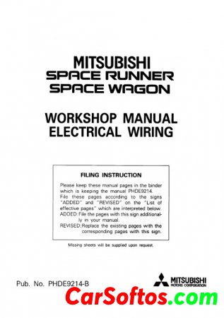 A collection of wiring diagrams in English for Mitsubishi Space Runner and Mirsubishi Space Wagon cars 1992-1997.