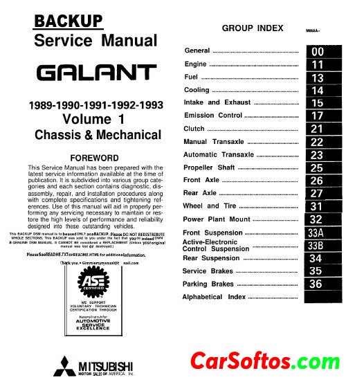 Mitsubishi publications - 2001 MITSUBISHI GALANT SERVICEMANUAL USA