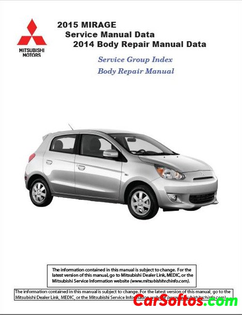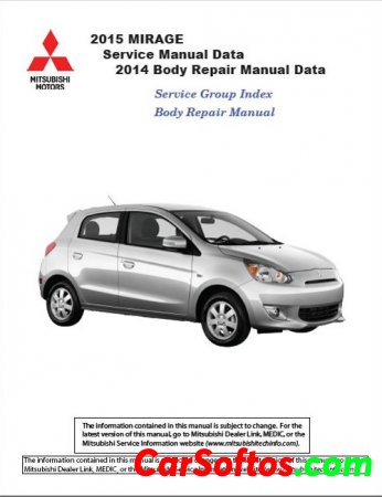 Manuals in English for the maintenance and repair (Service Manual) and body repair (Body Repair Manual) of the Mitsubishi Mirage 2014-2015.