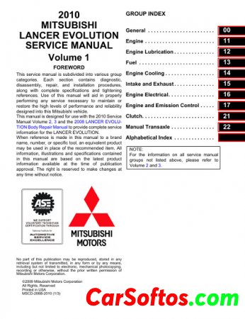 Mitsubishi Lancer Evolution X 2010 Maintenance and Repair Manual.