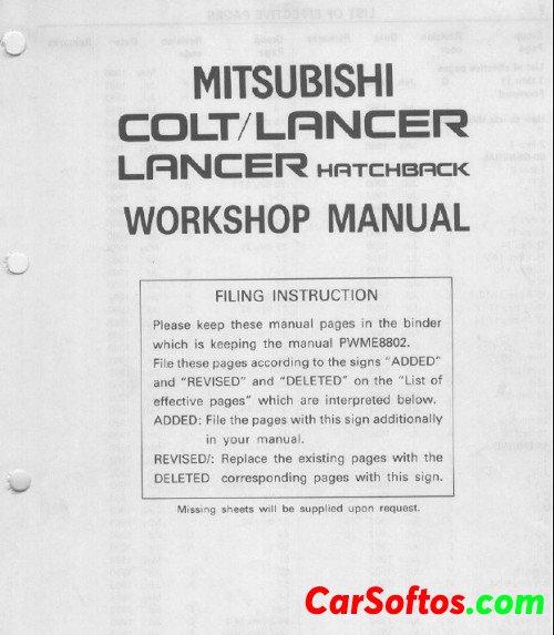 1993 Mitsubishi Colt and Mitsubishi Lancer Maintenance and Repair Manual.
