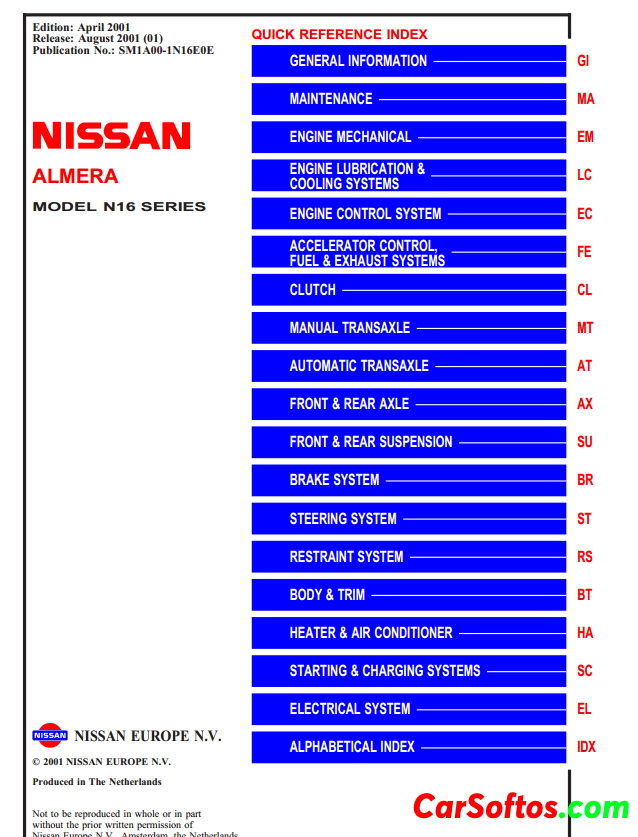 Description: Technical description of all units of the car Nissan Almera N16 model since 2000, with Sedan and Hatchback body.
