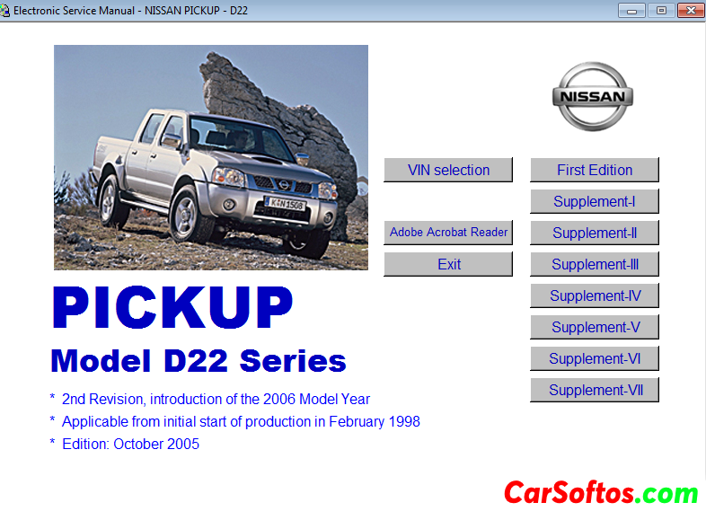Description: Nissan PickUp D22 Service Manual 1998-2003 + A program that determines the revision number of the manual by vin.