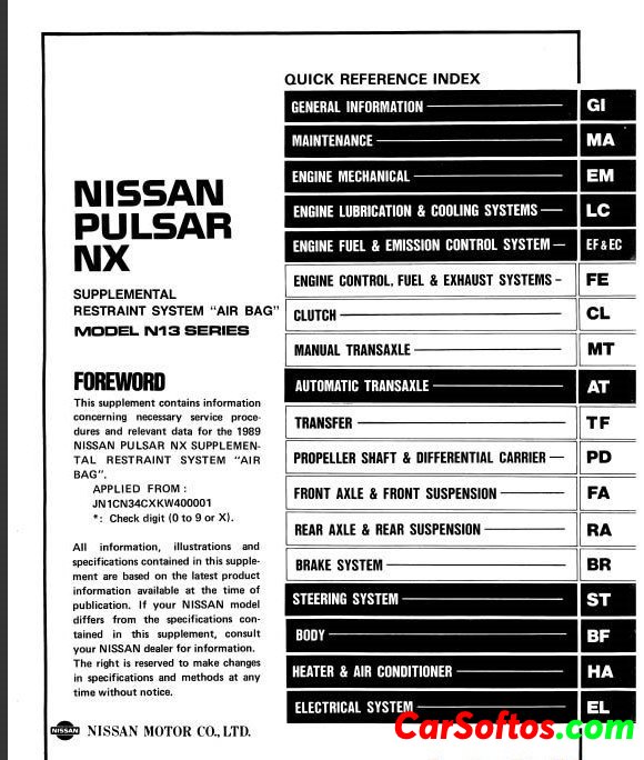 Description: 1989 Nissan Pulsar NX Service and Repair Manual.