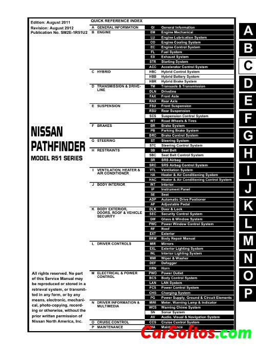 A collection of manuals in English for the maintenance and repair of the Nissan Pathfinder R51 series 2005-2012.