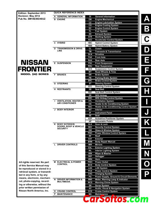 Collection of maintenance and repair manuals for the Nissan Frontier D40 series 2005-2014.