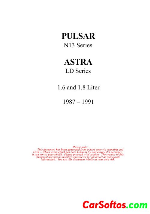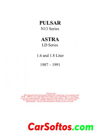 Maintenance and repair manual for Nissan Pulsar N13 series and Holden Astra LD series 1987-1991.