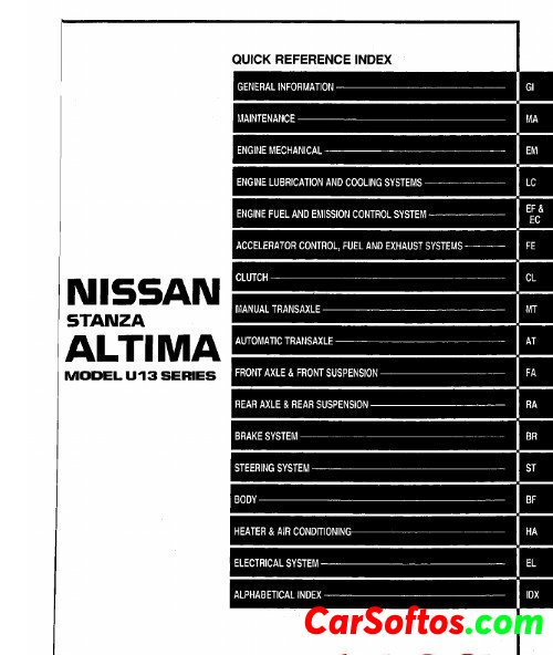 Collection of maintenance and repair manuals for the Nissan Altima / Stanza Altima U13 series 1993-1997.