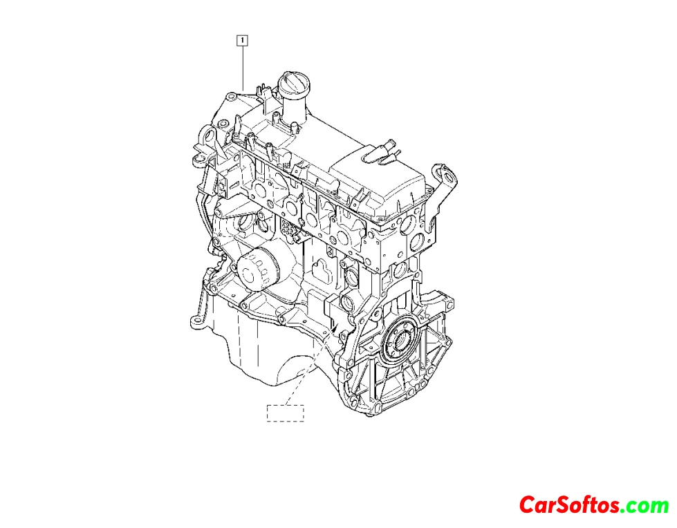Renault Kangoo El documento proporciona una lista de piezas de repuesto para varias partes de un motor, incluyendo el motor completo, sellos del motor, camisas de pistón, carcasa del motor, rodamientos, bloque del motor y cilindro. Para cada pieza, se proporciona información como códigos, números de pieza, piezas de repuesto, nombres, y notas sobre el número de fabricación y calificación del motor.