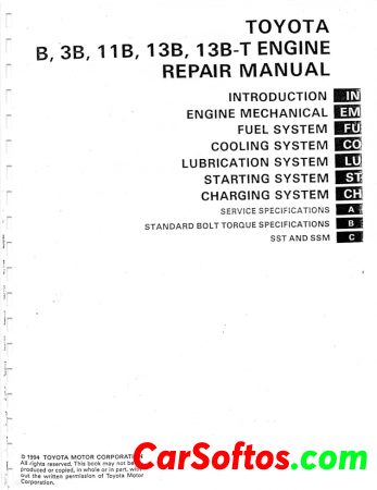Manual in English for the maintenance and repair of Toyota engines of models Engine B 3B 11B 13B 13B-T.